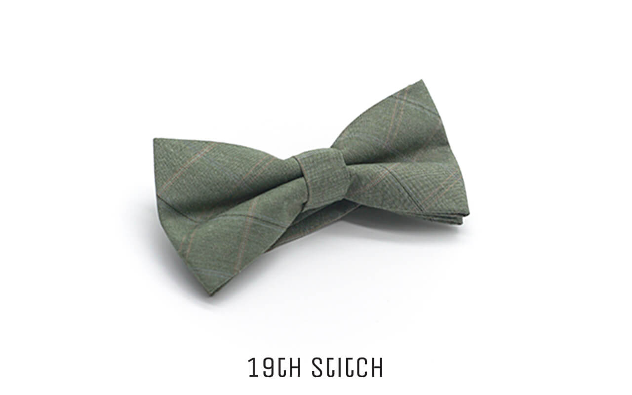 An earthy green bow tie detailed with soft brown plaid lines—ideal for warm, rustic, or vintage-inspired styles.