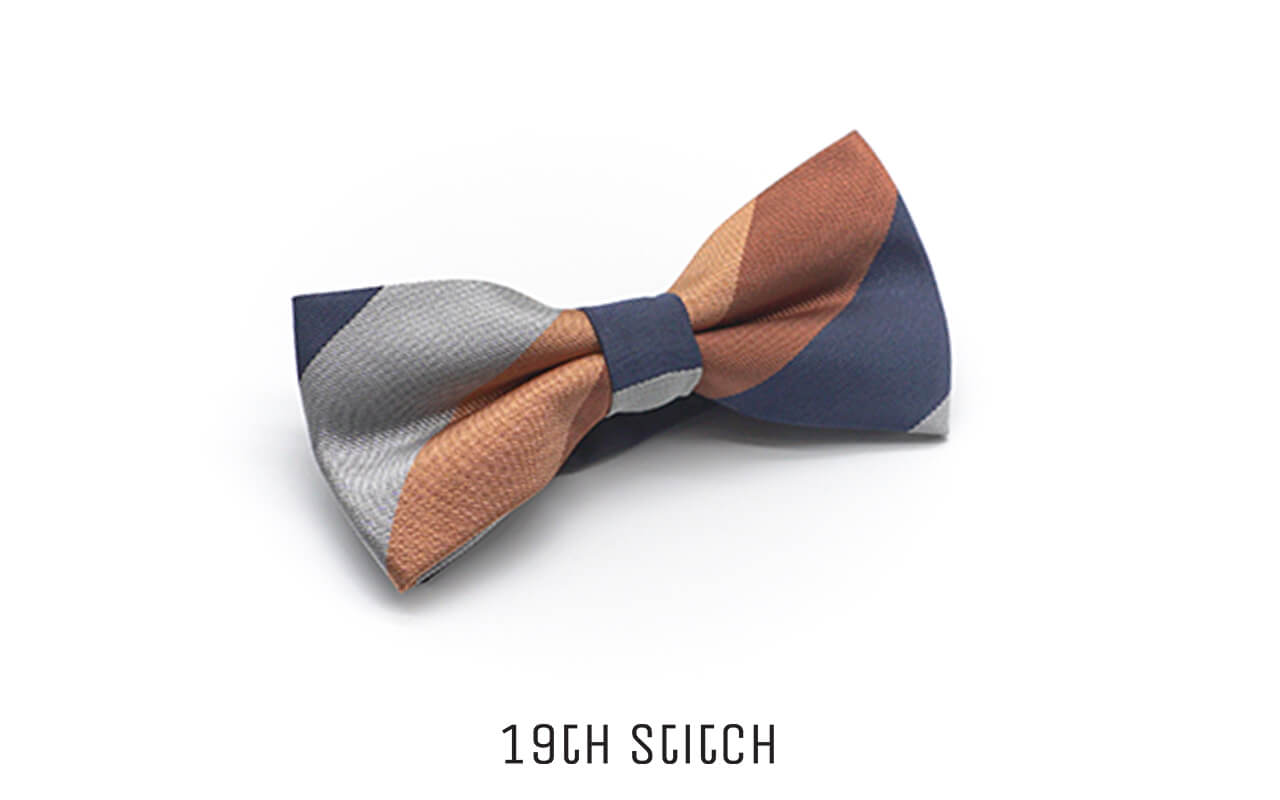 Grey Brown Blue Big Stripe Bow Tie