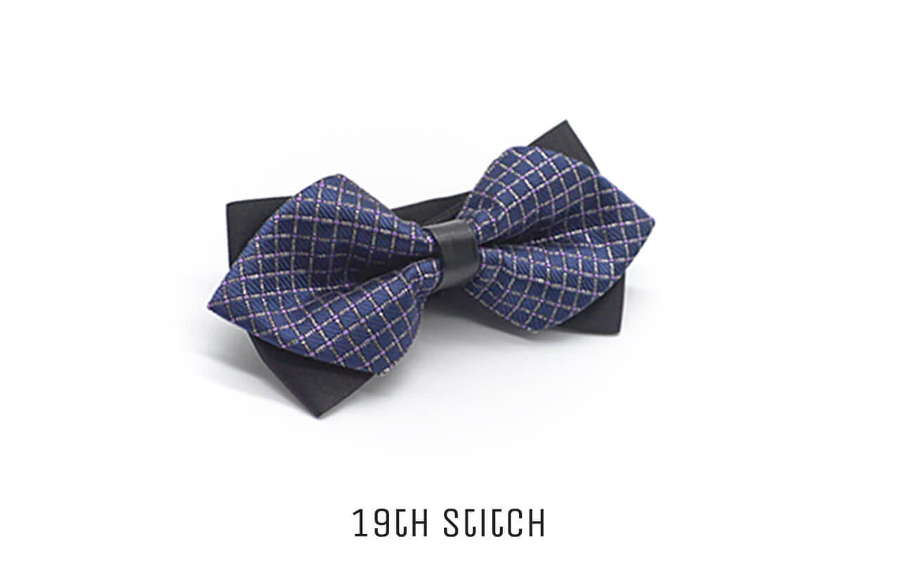 A sleek blue bow tie with silver grid lines — clean, stylish, and ideal for formal or semi-formal occasions.