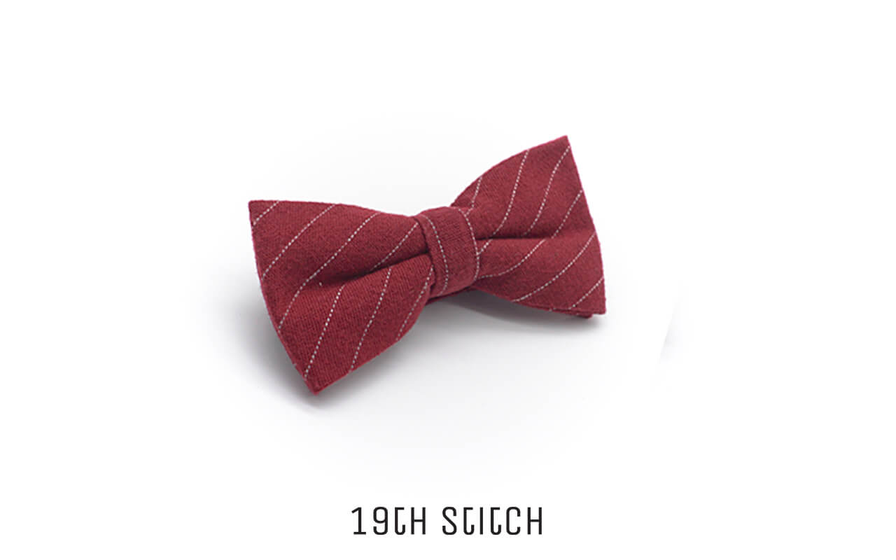 Vibrant red bow tie with clean white stripe—eye-catching contrast for sharp, standout style.
