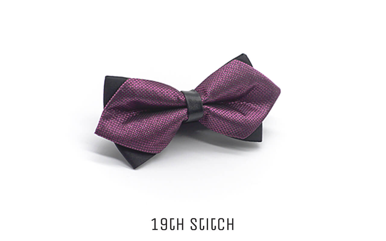 A refined purple bow tie featuring a small checkered pattern and light shimmer—elegant, modern, and eye-catching.