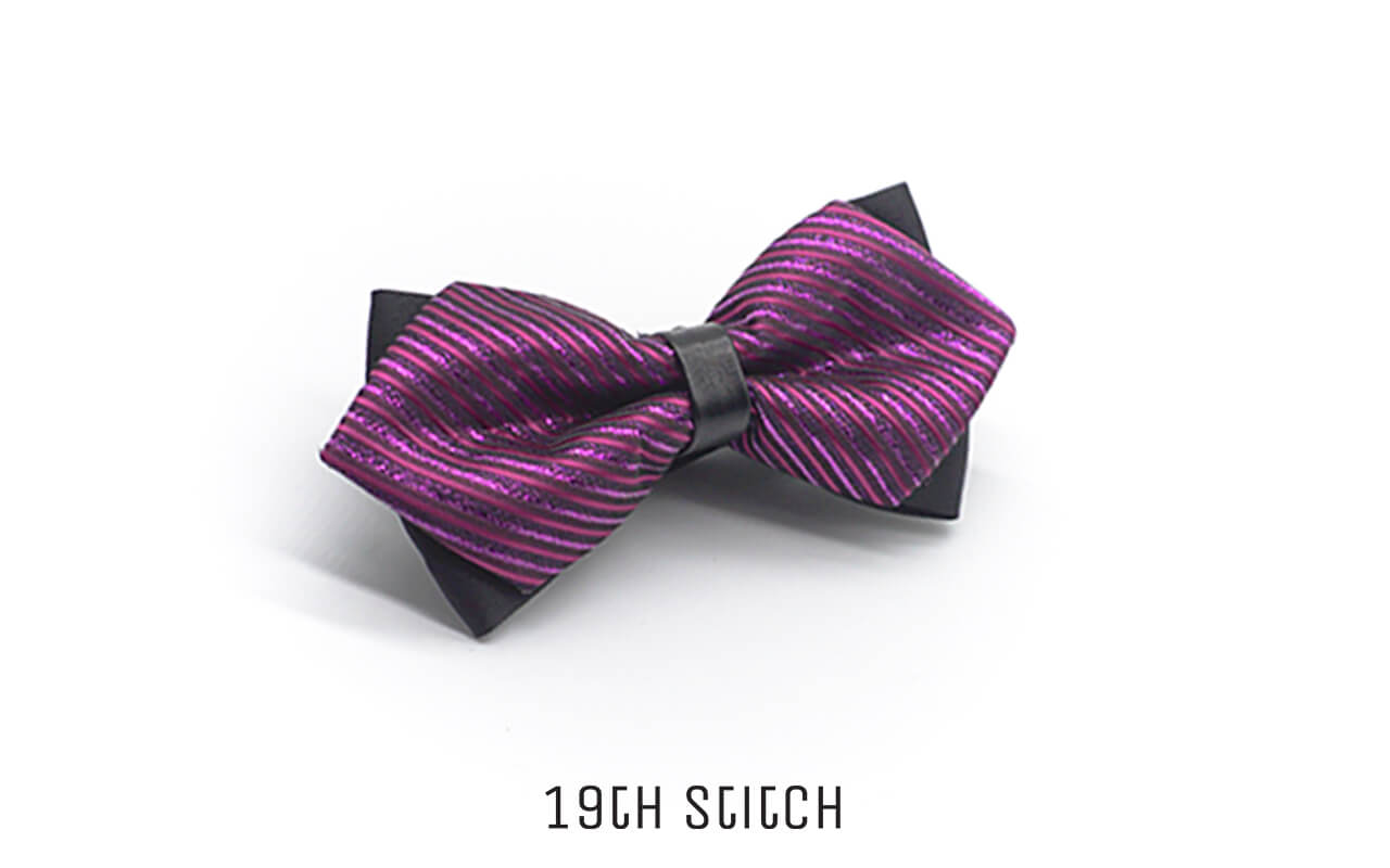 Modern and elegant, this violet bow tie with linear detailing brings sophistication to formalwear.