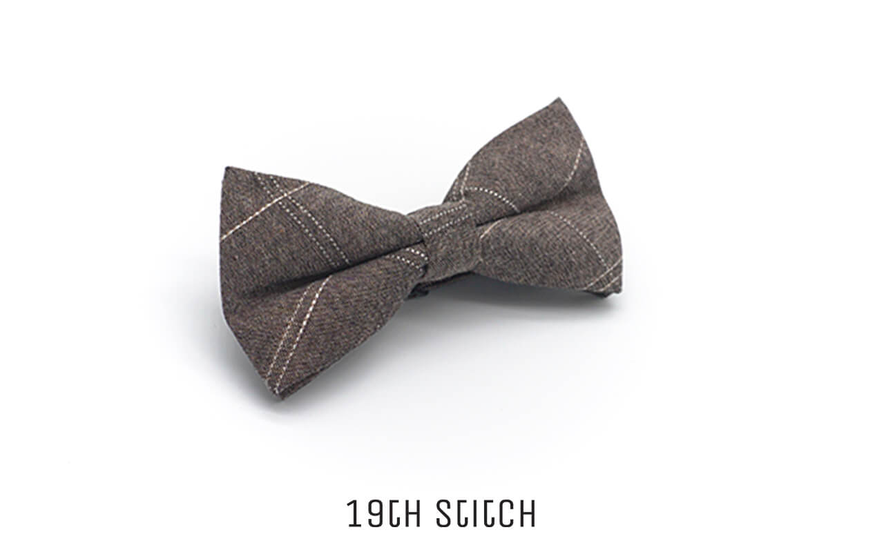 Classic brown windowpane check bow tie with sharp white lines—a timeless touch for modern gentlemen.