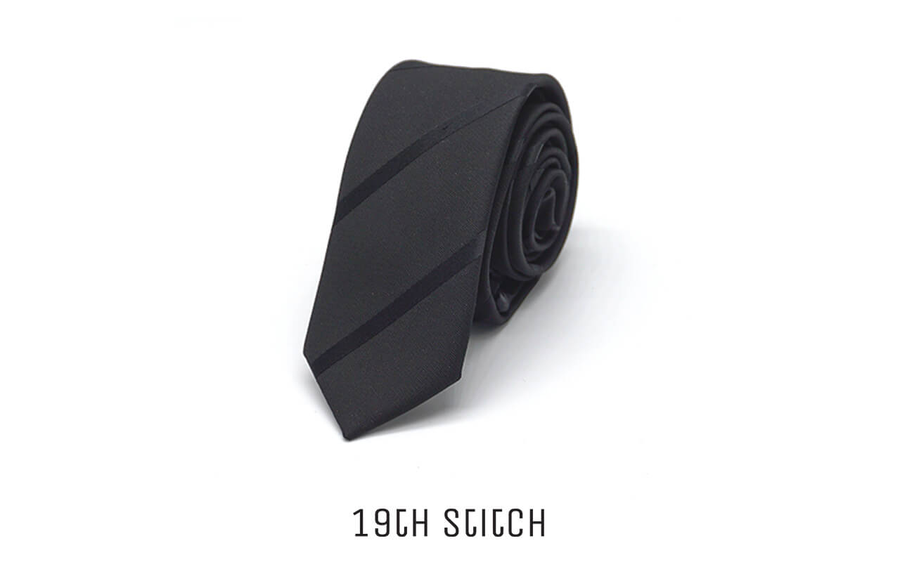 Black necktie with elegant stripe detailing—sharp, professional, and endlessly versatile.