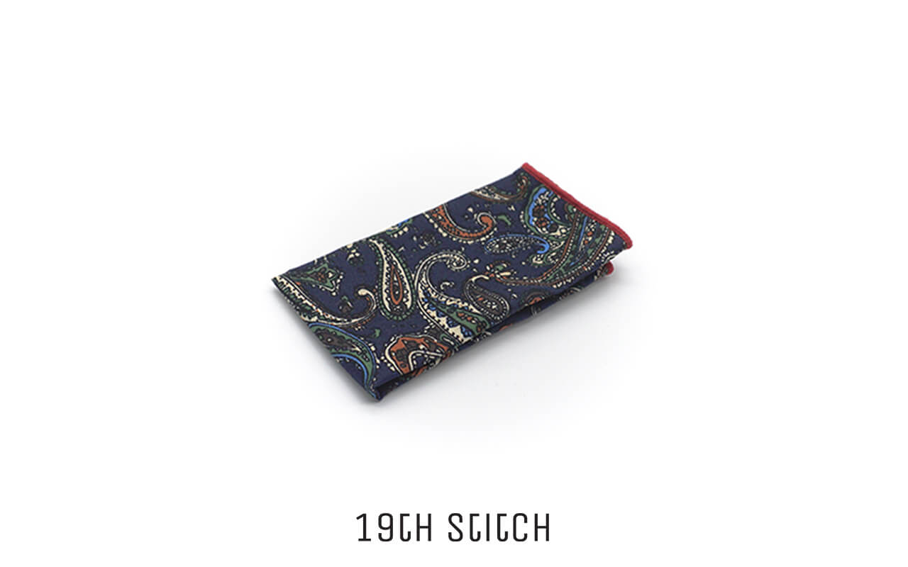 A sophisticated dark blue pocket square with a graceful swirl pattern—refined and versatile.