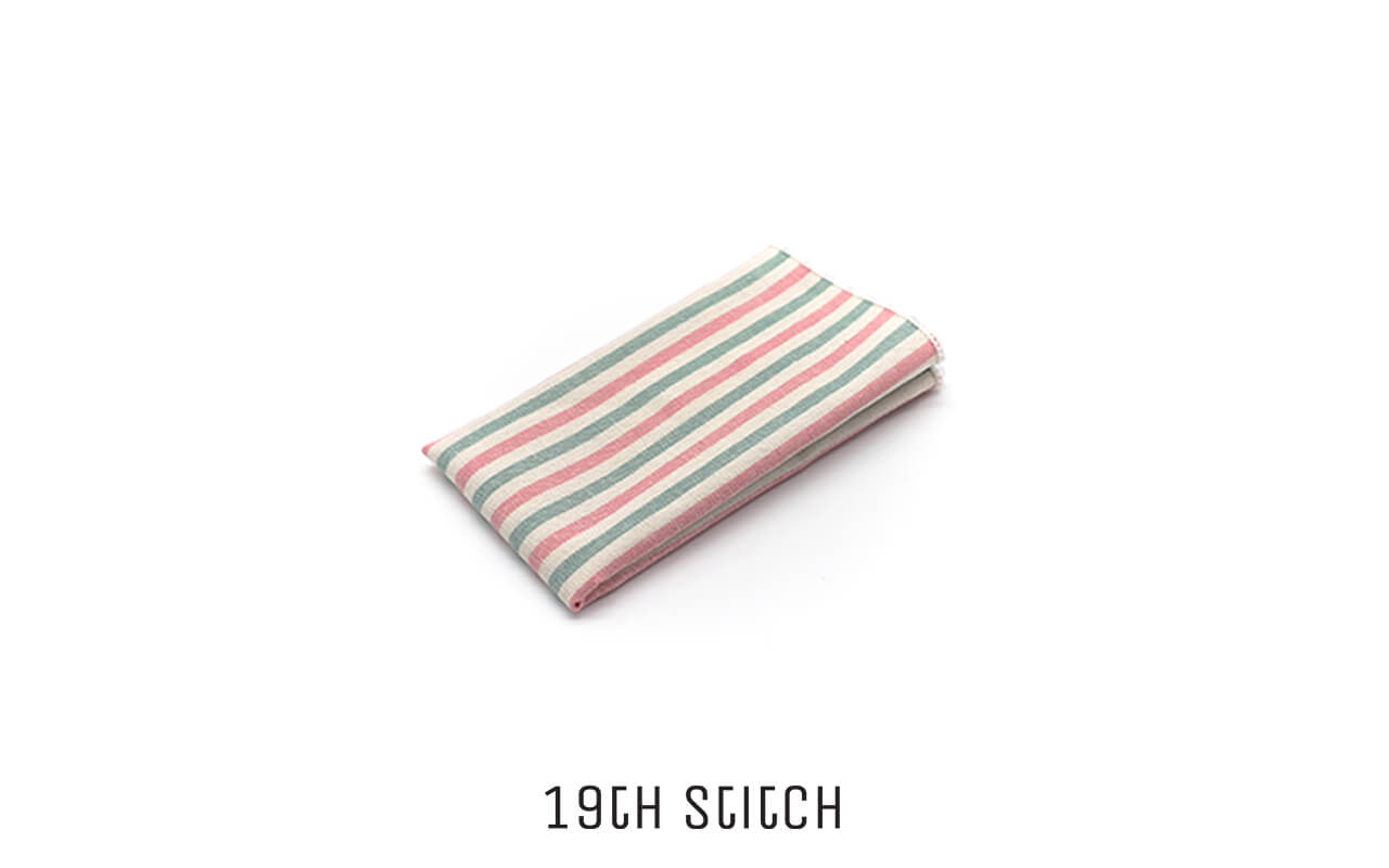 A soft off-white pocket square with delicate pink and green lines—elegant and understated.
