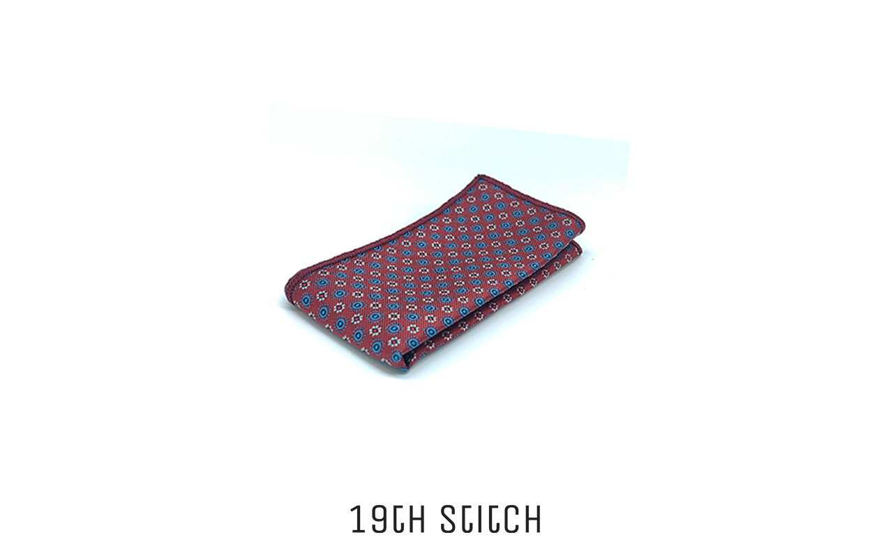 Make a statement with this red pocket square featuring a crisp white and blue floral design—fresh, stylish, and full of character.