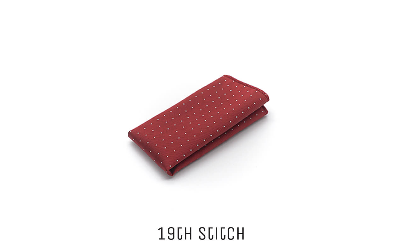 A bold red pocket square with classic white polka dots — charming and effortlessly stylish.