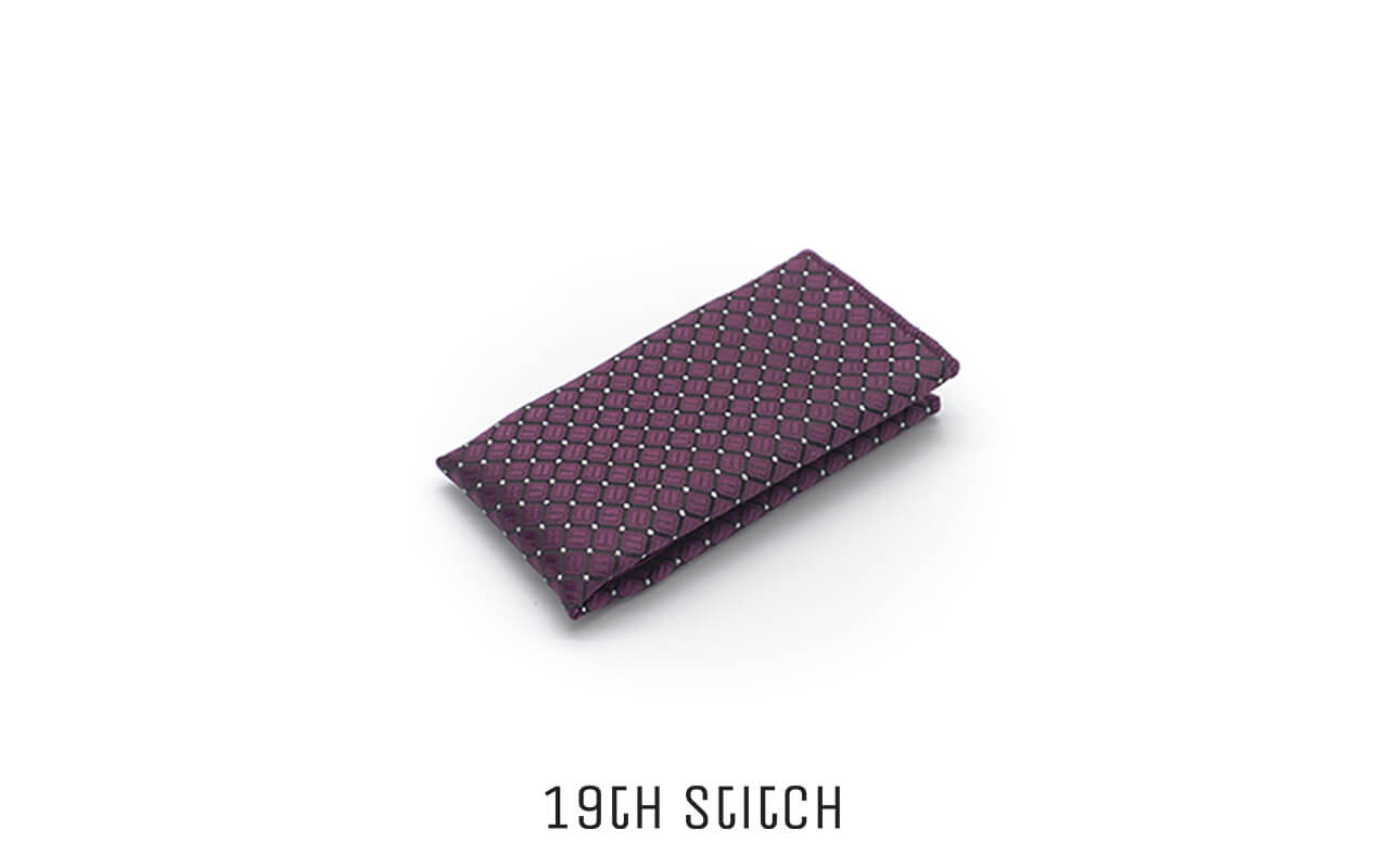 A refined purple pocket square with small checks and a subtle blink effect—modern elegance with a touch of flair.