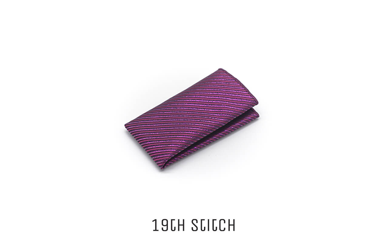 A stylish violet pocket square with sleek line detailing—elegant and versatile for formalwear.